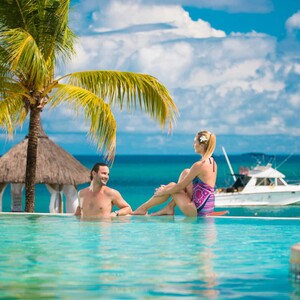 Return flights to Mauritius Return resort transfers 5 nights accommodation in a Deluxe Sea View Room Half Board daily