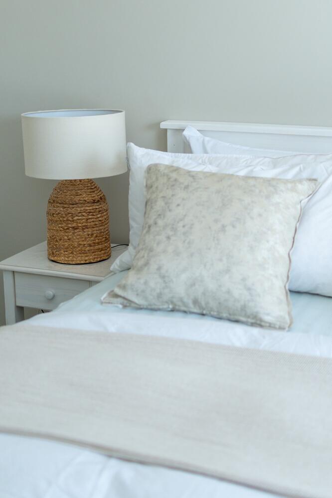 The home features a fully equipped kitchen, including a gas stove, oven, air fryer, coffee machine, kettle, toaster, microwave, cutlery, crockery, fridge-freezer, and a breakfast bar with stools. A dishwasher, washing machine, and tumble dryer are available in the separate scullery. The lounge and dining area offer comfortable seating for guests to dine and relax, and also include a double child-only sleeper couch and a fireplace. For guests’ entertainment, smart TVs are available in each bedroom as well as the lounge, with access to streaming services and Wi-Fi.